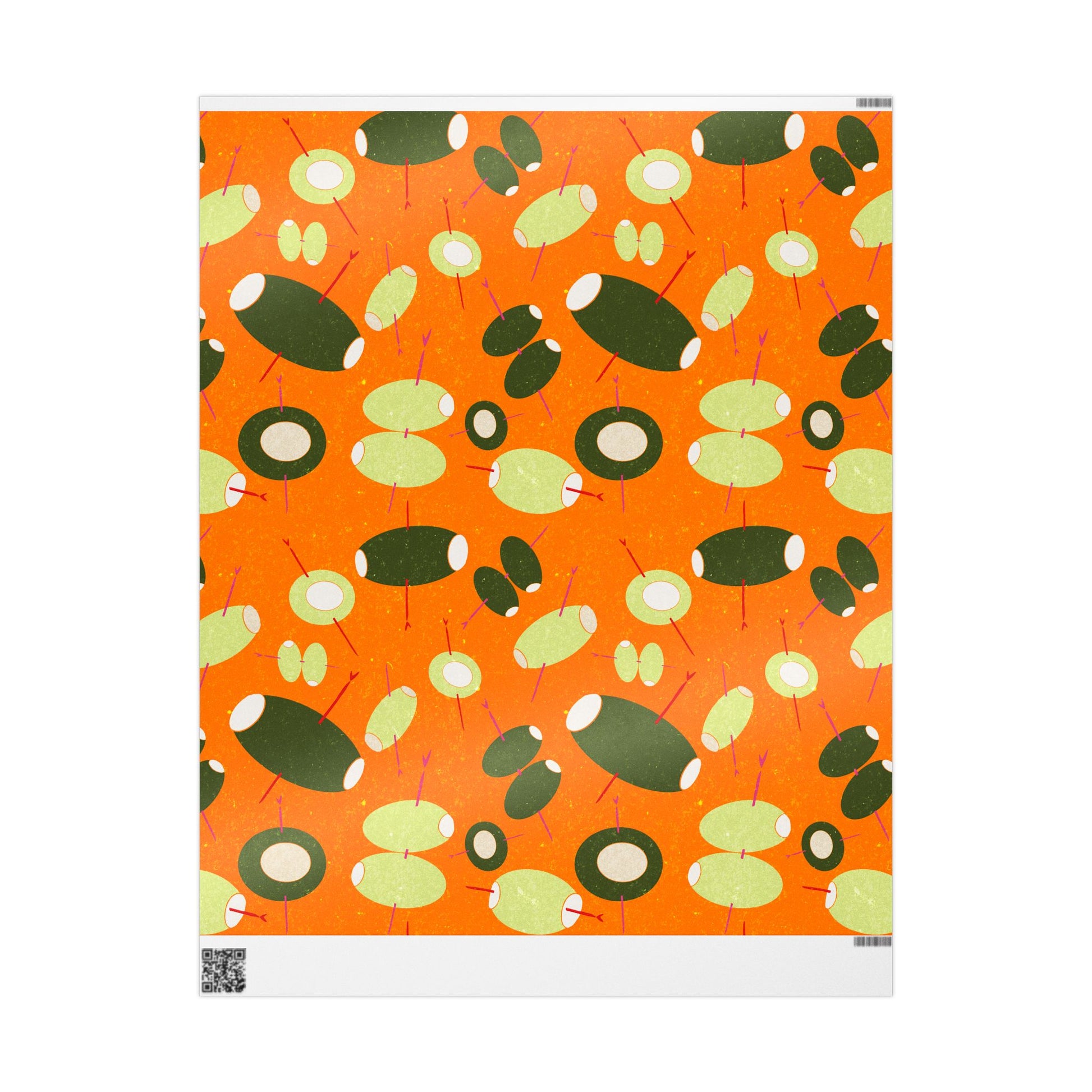 Elevate your gift-giving with these Wrapping Papers featuring bleu cheese stuffed cocktail olives with a fun pick in a pop of pink. Perfect for wrapping up special hostess gifts for your friends, these papers exude a celebratory and joyful vibe. Ideal for those who love to add a personal touch to their presents, these papers are relevant for birthdays, holidays, hostess gifts, and special occasions.